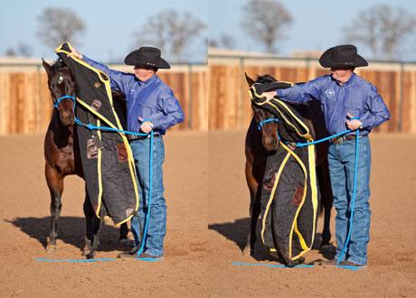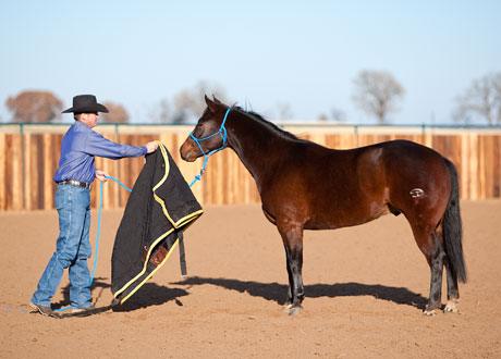 As a horse owner, your job is to teach your horse to use the thinking side of his brain and desensitize him to as many objects that move and make a noise as possible—and blankets are a perfect example.