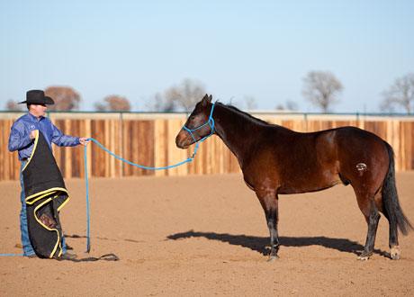 8. Keep in mind that some horses won’t show you one of the five signs of relaxing, but if the horse stands still for 15 seconds, it’s OK to retreat. At that point, he’s telling you that he is not interested in running. He may be a little scared of the blanket, but at least he’s not running away from it.