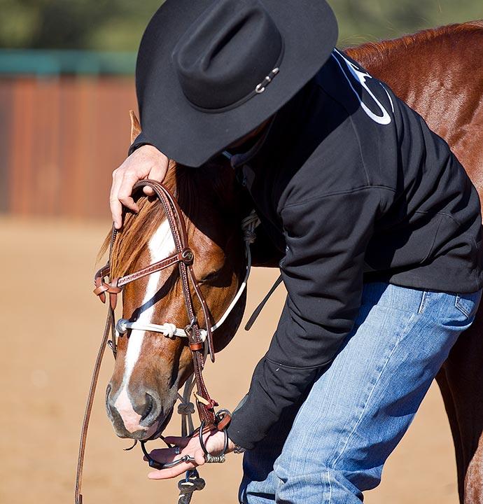 I start all colts off in a smooth snaffle, which is the mildest type of bit. If a colt is heavy and wants to lean and pull on the bit, I’ll use a twisted snaffle, and if necessary, a square snaffle, which discourages horses from leaning on the bit even more. You can always go back to a milder bit once you have the colt soft, but in the beginning, it’s important to have the proper tools to get the job done.