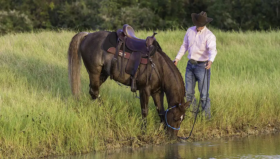 Introducing a horse to water after a training session, when he’s hot and thirsty, will make the water more inviting to him.
